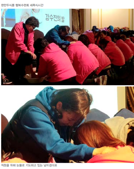 남미경 사장은 직원들의 발을 씻으면서 눈물을 흘릴수밖에없었다.