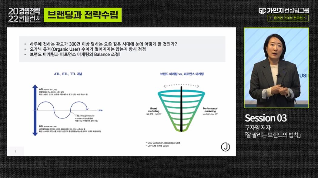 3일, 가인지컨설팅그룹에서 주최하는 제6회 2022 경영전략 컨퍼런스가 열렸다. 이하는 '잘 팔리는 브랜드의 법칙'의 구자영 저자가 '디지털 시대, 잘 팔리는 온라인 마케팅 노하우'를 주제로 강연을 진행한 내용이다.