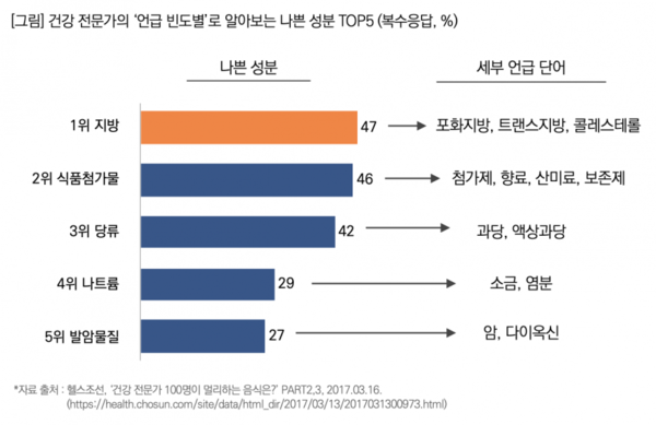 건강 전문가의 언급 빈도로 알아본 나쁜 성분, ‘지방’이 가장 많이 언급돼