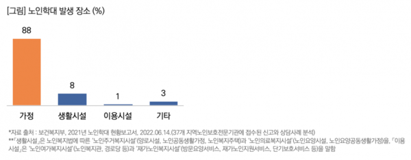 노인학대 대다수(88%)는 ‘가정’에서 발생