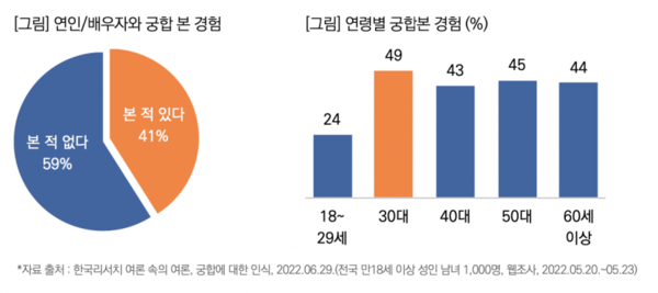 연령별로는 결혼 적령기인 30대 연령층에서 가장 경험률(49%)이 높은 것으로 나타났다.