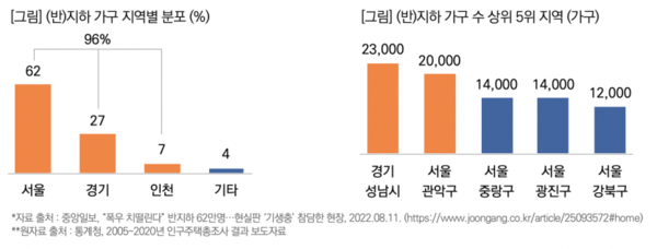 한편 전국 시·군·구 중 (반)지하 거주 가구 수가 가장 많은 지역은 ‘경기 성남시’와 ‘서울 관악구’이다.