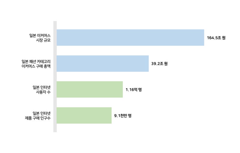 위는 일본 이커머스 시장의 규모를 한눈에 보여주는 그래프이다. 또한, 28일 이베이재팬의 조사 결과에 따르면, 큐텐재팬의 패션전문관 ‘무브’에 입점한 한국 패션 셀러 ‘바잘’의 지난달 매출이 무려 올해 4월 대비 520%나 증가했다고 한다.