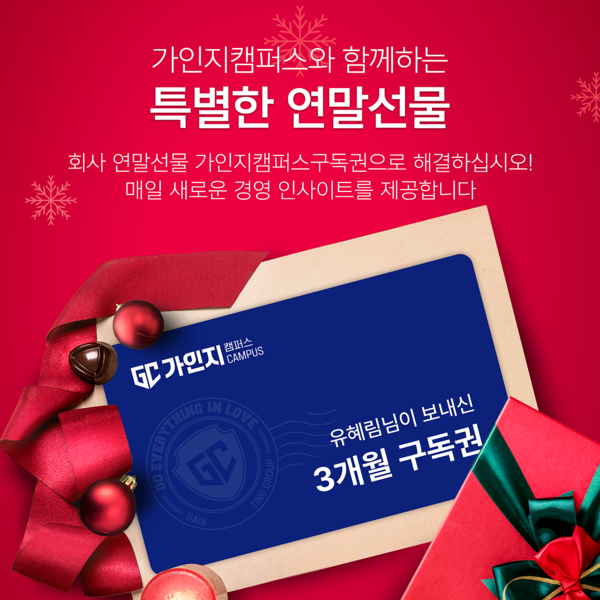 “직원의 입사/승진 때, 지인이 창업했을 때, 경영을 어려워할 때, 연말&연초 색다른 선물을 하고 싶을 때 가인지캠퍼스 구독권을 선물하기 좋다"라고 밝혔다.