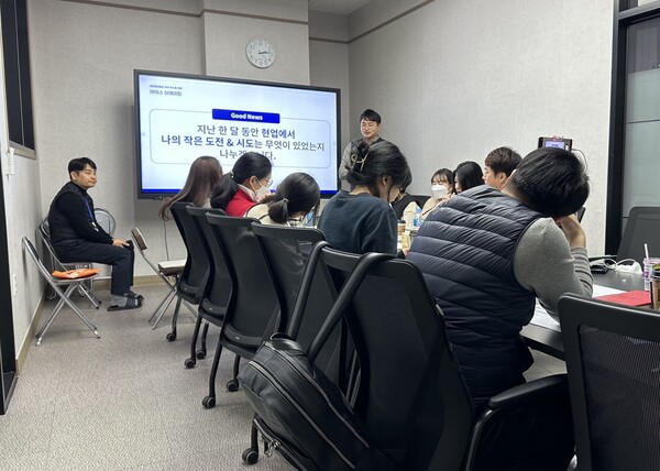 이날 미팅에는 경리법인 일조의 경영진과 전 직원, 가인지컨설팅그룹 안상준 OKR 전문 코치가 참석했다. 미팅은 오후 2시 10분부터 4시까지 총 2시간 동안 진행됐다.