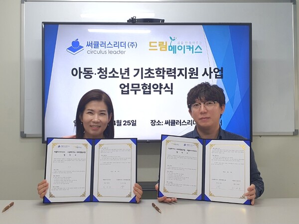 소셜벤처기업 써큘러스리더(주)과 드림메이커스 사회적협동조합(이하 드림메이커스)이 사회적배려대상 아동·청소년의 기초학습 지원을 위해 25일 업무협약을 체결했다.