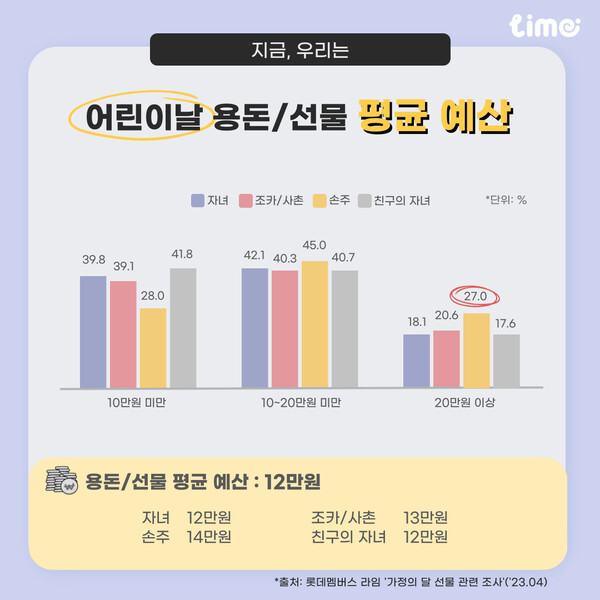 오현진 롯데멤버스 리서치셀리더는 “어린이날 선물 계획 여부는 이맘때면 으레 자녀 선물을 준비하는 40대의 응답률이 가장 높았지만, 평균 선물 예산은 20대와 60대에서 훨씬 높게 나타났다”며