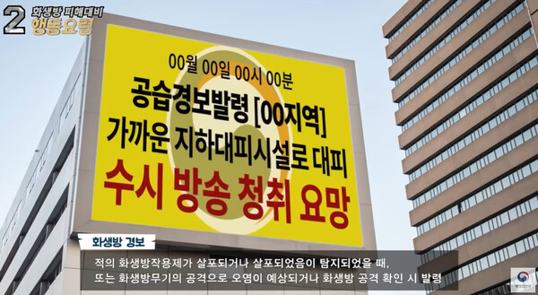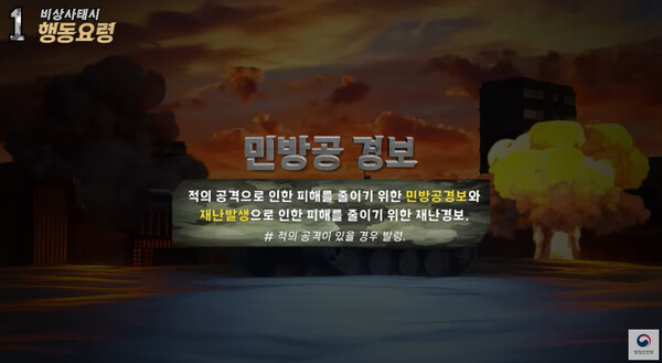 경계경보 위급 재난 문자 해프닝으로 인해 지난 2021년 12월 22일 행정안정부에서 공개한 ‘비상사태 발생 시 국민행동요령’에 관한 영상도 다시금 주목을 받게 됐다.
