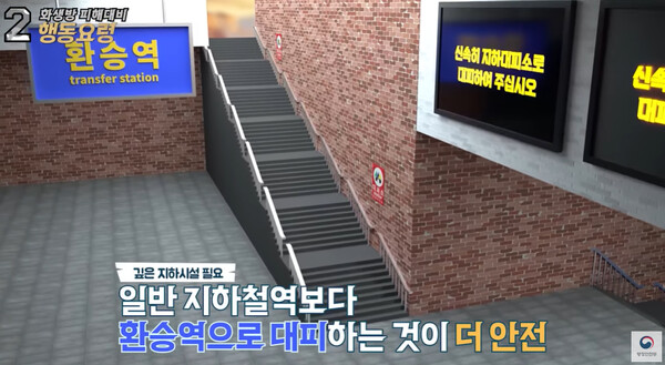 지하가 깊을수록 더 안전하다. 일반 지하철역보다는 환승역으로 대피하는 것이 더 안전하다.