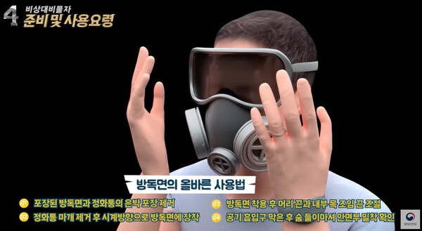 방독면 같은 경우 올바른 사용방법을 숙지하는 것이 좋다.