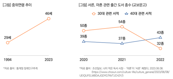 최근 출판 시장에서도 변화가 감지되는데 교보문고에 따르면 ‘출간 도서 종수’도 40대 관련 책이 30대 관련 서적을 추월하였는데, 40대 관련 서적의 경우 2022년 기준 전년 대비 16%가량 증가한 것으로 나타났다.