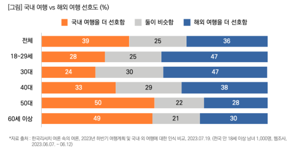 젊은이는 해외 여행 vs 장노년은 국내 여행 선호