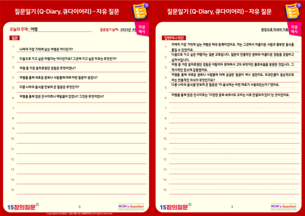 다음은 3색줄독서 질문도구에서 활용하는 질문일기(자유질문) 샘플입니다.