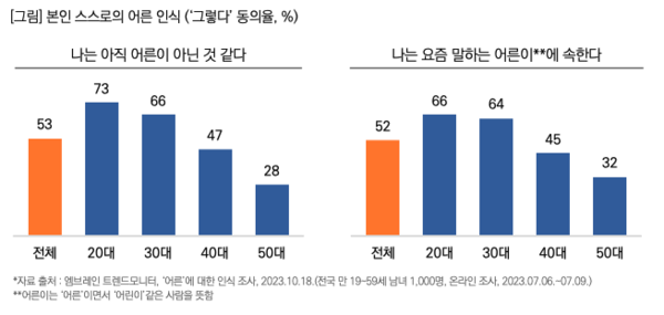 1. 한국 성인 53%, ‘나는 아직 어른이 아닌 것 같다’