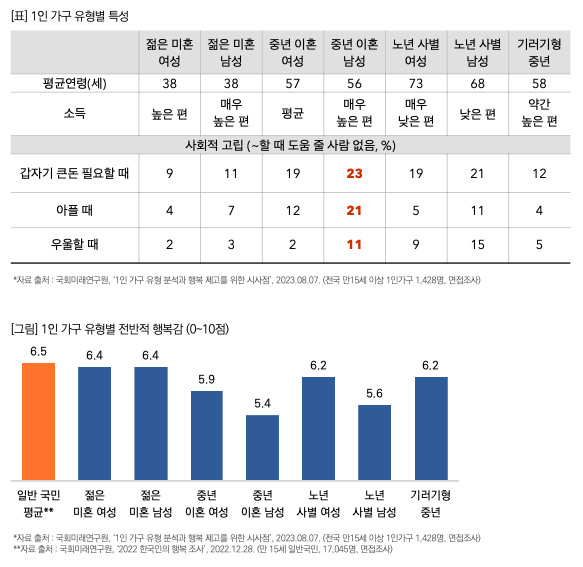 1. 이혼한 중년 남성, 1인 가구 중 행복감 가장 낮아