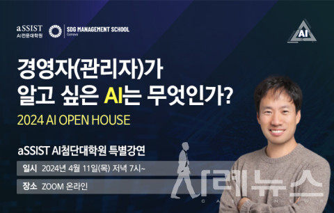 서울과학종합대학원대학교(aSSIST University) AI 전문대학원이 주최하는 ‘2024 AI OPEN HOUSE’가 오는 4월 11일(목)에 온라인(zoom)으로 진행된다.