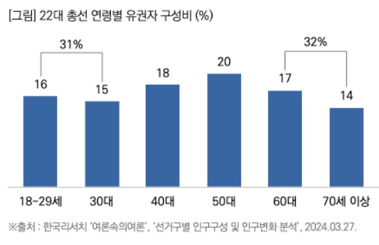 이번 총선 ‘60세 이상’ 유권자가 ‘30대 이하’보다 많은 첫 선거