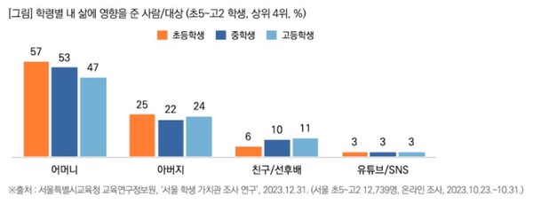 학령 높아질수록 ‘어머니’ 영향력 줄고, ‘친구/선후배’ 늘어