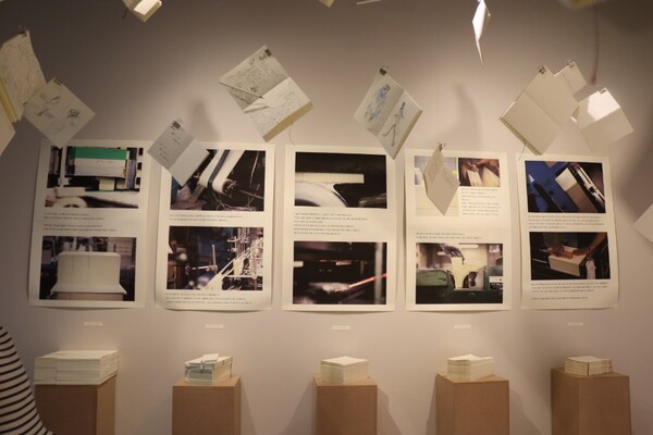 이번 행사를 기획하게 된 것도 직접 와서 MD노트 제품을 눈으로 볼 수도 있고 손으로 만져 볼 수도 있고 준비된 필기도구로 써보고 낙서도 해보면서 이 노트의 특징을 느껴봤으면 해서 기획하게 된 거예요. 종이가 어떻게 좋은지, 왜 이렇게 비싼지를 현장에서 느껴 볼 수 있도록 체험형 행사를 한 거예요.