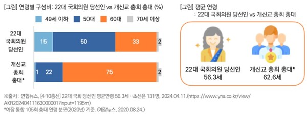 평균 연령 비교, 국회의원 56.3세 vs 개신교 총대 62.6세
