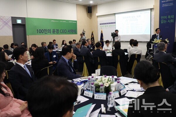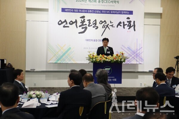 5월 2일 ‘언어폭력 없는 사회’라는 주제로 ‘2024년 제21회 윤경 CEO 서약식’이 핀란드타워 지하 1층 아트홀에서 진행됐다. 올해 진행되는 ‘2024년 제21회 윤경 CEO 서약식’은 21주년을 맞이해 언어폭력 없는 사회를 만들기 위해 CEO의 실천의지가 중요하다는 것을 강조했다.