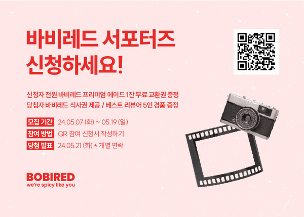 자세한 서포터즈 모집 정보는 ‘바비레드’ 인스타그램(@BOBIRED_)과 공식 블로그를 통해 확인 할 수 있다.