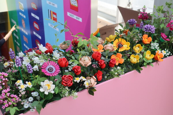 2층으로 향하는 계단을 올라가다보면 양쪽 벽면에 레고 역사를 한눈에 볼 수 있는 이미지들이 눈에 띄었다. 전세계적으로 사랑받는 장난감 중 하나인 레고는 레고는 1932년 목수였던 올레 키르크 크리스티안샌이 설립해서 나무 장난감을 만드는 기업에서 시작됐으며 90년이 넘었다. 2층에 올라가자마자 보이는 전시 거울 앞에는 식물 테마 시리즈 ’레고 보태니컬 컬렉션‘의 여러 송이의 레고 꽃들이 화려하게 피어 있었다.