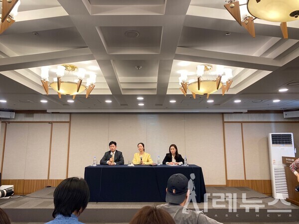 5월 31일 한국프레스센터 19층 매화홀에서 그룹 뉴진스 소속사인 어도어 민희진 대표 기자회견이 진행됐다. 어도어 민희진 대표이사는 임시주주총회 관련 입장을 설명하는 기자회견을 진행했다.