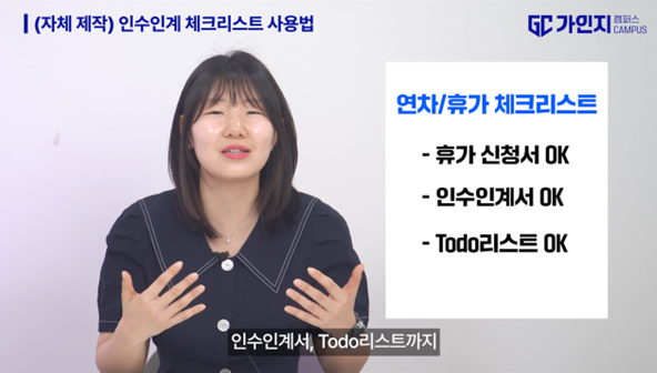 끝으로 유하림 선임컨설턴트는 이러한 휴가 이슈 중 가장 큰 중요도를 지닌 인수인계와 관련한 문제 해결 방안인 인수인계서 또한 가인지캠퍼스에서 제공한다고 설명했다.