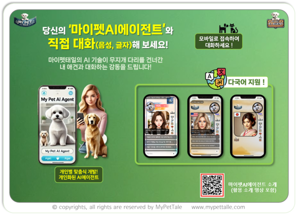 이러한 시대적 요구에 부응하여 My Pet Tale에서 선보인 혁신적인 서비스, **마이펫AI에이전트(My Pet Agent)**가 큰 주목을 받고 있습니다.