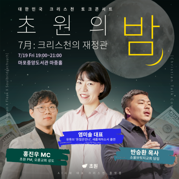 크리스천 대표 플랫폼 ‘초원’을 개발하고 운영하고 있는 어웨이크코퍼레이션은 7월 19일 청년 크리스천을 위한 400석 규모의 오프라인 토크 콘서트 ‘초원의 밤’을 개최한다고 10일 밝혔다.
