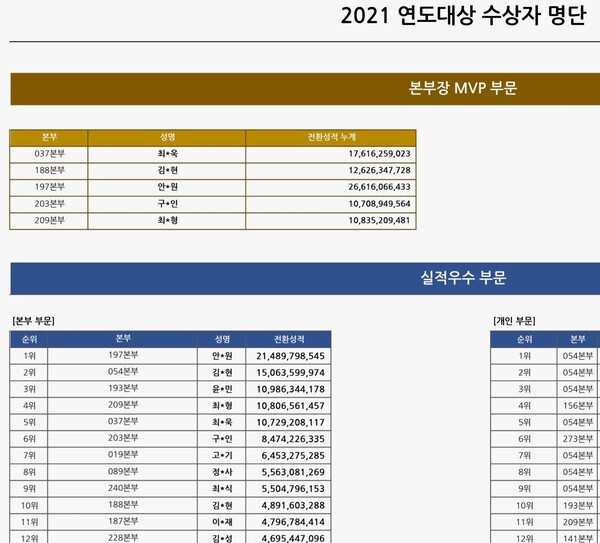 그러나 저는 정반대의 길을 걸었고, 후배들이 그대로 따라가며 실적을 낼 수 있었습니다. 2013년 글로벌 금융판매에서 본부 전체 판매 1위, 2017년 전체 지점 1위, 2021년 본부장 MVP 등 우수한 실적을 바탕으로 프라임 에셋에서 연봉 1위를 달성하기도 했습니다.