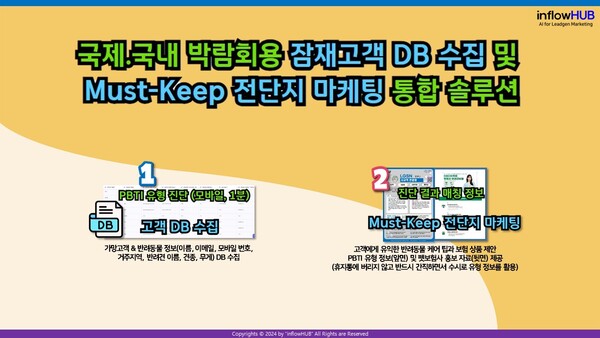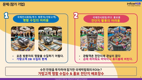 인플로우허브는 AI를 기반으로 국제박람회에서 잠재고객 DB를 효율적으로 수집하고, Must-Keep 전단지 마케팅을 통합적으로 관리할 수 있는 솔루션으로, 마케팅 전략의 패러다임을 변화시킬 것으로 기대된다.