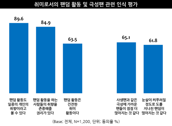 전반적으로 ‘팬덤’ 문화의 범위가 확대되고 있는 가운데, 팬덤 활동을 개인의 취향으로 여기는 태도가 뚜렷해지고 있는 것으로 나타났다.