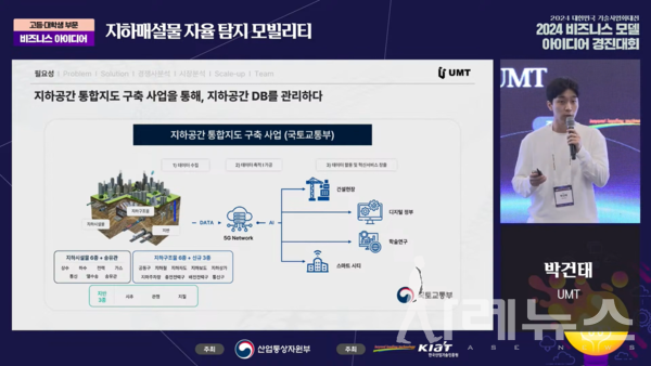 경북대학교 박건태, 오재현, 최경진 학생으로 구성된 UMT팀은 ‘지하매설물 자율 탐지 모빌리티’라는 아이디어를 통해 대학생 부문에서 최우수상을 수상했다.