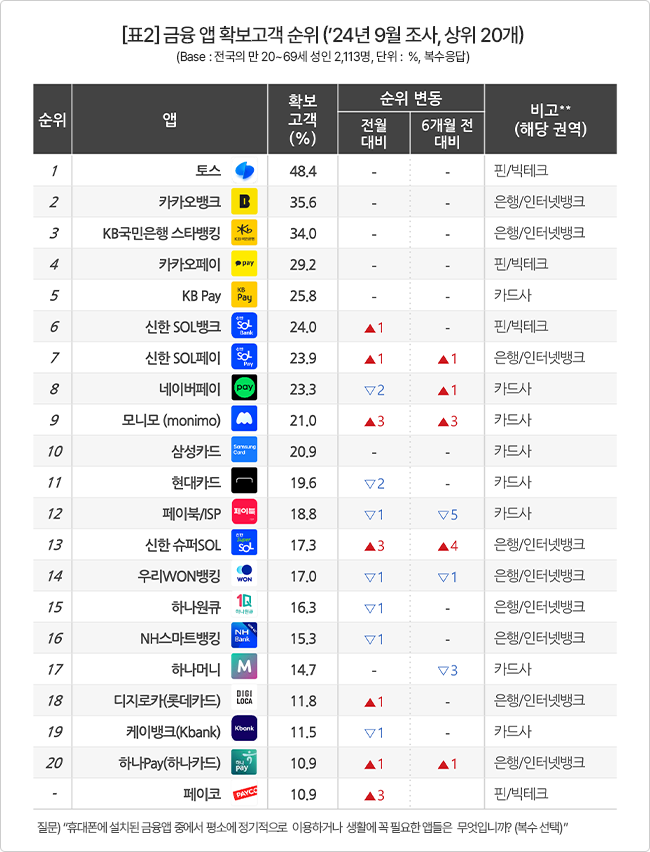 소비자가 꼽은 ‘정기적/생활 필수 금융 앱’ 순위