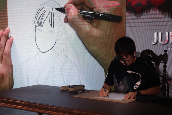 이날 팬미팅에서는 팬들이 그린 이토 준지 작가의 그림을 비롯해 라이브드로잉 등이 진행됐다.