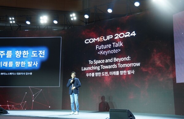 ‘컴업 2024’ 둘째날에 이노스페이스 김수종 대표는 “우주를 향한 도전, 미래를 향한 발사”라는 주제로 발표를 진행했다.
