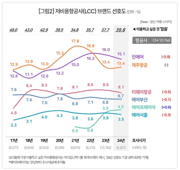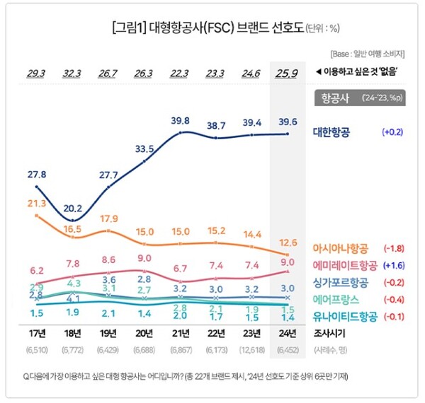 컨슈머인사이트, ’24년 여행상품 만족도 조사...항공사 브랜드 선호도