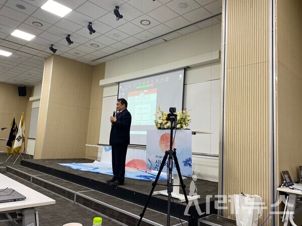 곧이어 조동성 이사장은 미션과 비전에 대한 강연을 진행했다. 조동성 이사장은 감기에 걸려 목소리가 안 나와 AI 조동성 음성으로 발표를 진행했다.