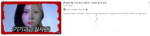 유튜브 프로젝트 중에서는 롯데시네마의 유튜브 콘텐츠 중 <'기기괴괴 성형수' 사용법 실사 버전> 영상이 기억에 남아요. 이 영상은 50만 조회수를 기록하며 큰 관심을 받았죠.