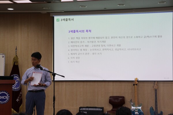 심재우 대표가 개발한 ‘3색줄독서법’은 텍스트를 세 가지 색으로 구분해 읽게 함으로써 학생들이 단순한 이해를 넘어 중요성·심화 탐구·비판적 해석을 스스로 발견하도록 돕는다.