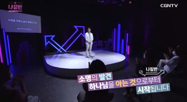 지난 3일 방송된 CGN TV ‘나침반 시즌2’ 89회에서 가인지컨설팅그룹 김경민 대표는 ‘소명에 관한 오해와 진실’이라는 주제로 특강을 펼쳐다. 김 대표는 소명을 이루는 삶에 대한 이야기로 특강을 진행했다.