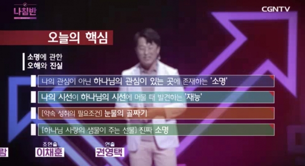 가인지컨설팅그룹 김경민 대표, CGN TV ‘나침반 시즌2’에서 ‘소명에 관한 오해와 진실’ 특강 펼쳐