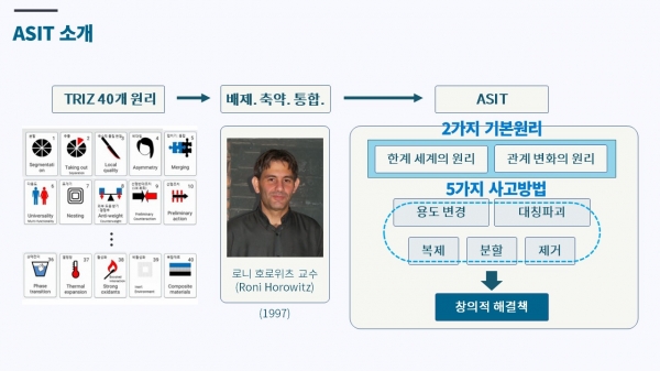 ASIT는 2가지 기본 원리와 5가지 사고 방법으로 창의적인 해결책을 낼 수 있다.